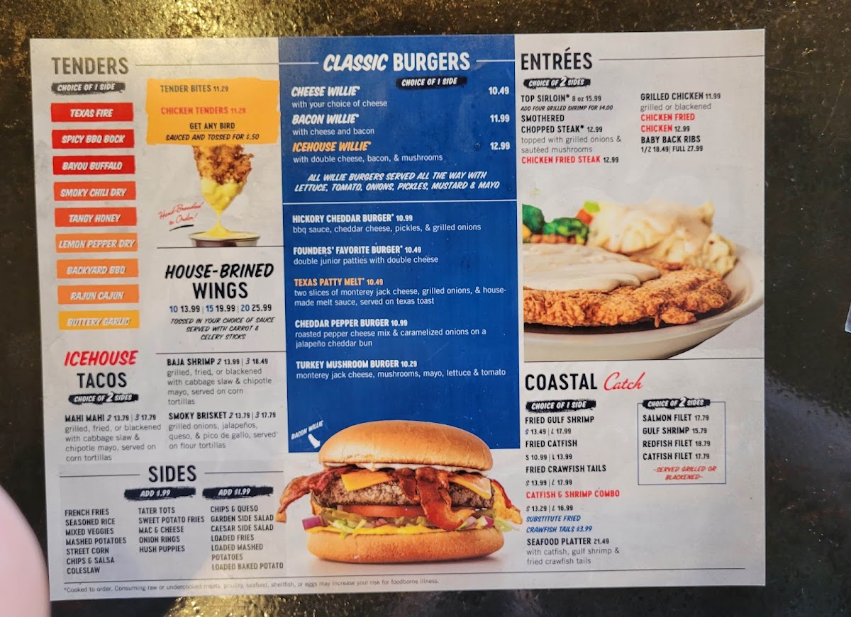 The menu boasts a delectable array of options that cater to various tastes. The Willie’s burger is a standout, drawing rave reviews for its juicy flavor and perfect seasoning. Guests also enjoy classic sides, particularly the crispy fries, regarded as the best accompaniment among many dishes. For seafood enthusiasts, the seafood combo is noteworthy; though some find it on the pricier side, its quality does not disappoint.